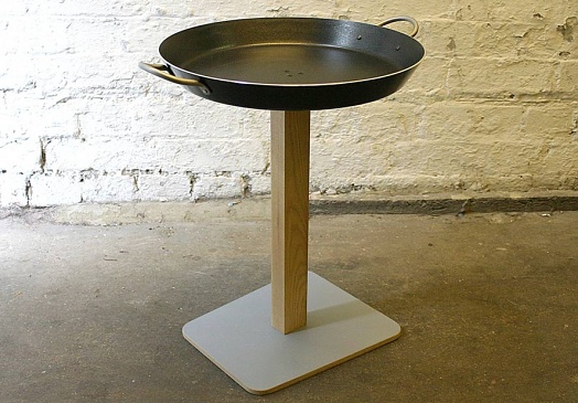 Side table made in Spain with paella dish, for Object Abuse, an exhibition at KK Outlet.