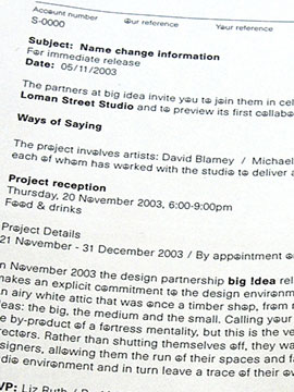Loman Street Studios invited three designers to contribute a type based project for their new building. Marriott's proposal was to take the existing house font (Unica, designed by Andre Gurtler in 1980) and substitute the o's for Gerald Holtom's peace symbol from 1958. This usually hand drawn or hippy symbol combined with the crisp modernism of Unica was a means of infecting the studios corporate communications with a viral message.